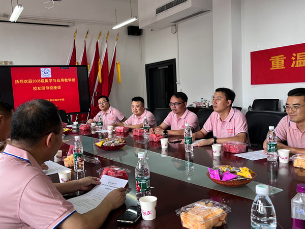 7月27日,老虎机游戏在线玩 2005级数学与应用数学班校友在毕业十五年之际回到母校,在志学楼331会议室欢聚座谈。学院院长焦建军、党委副书记朱吉韬、教师代表及部分校友和学生代表参加。