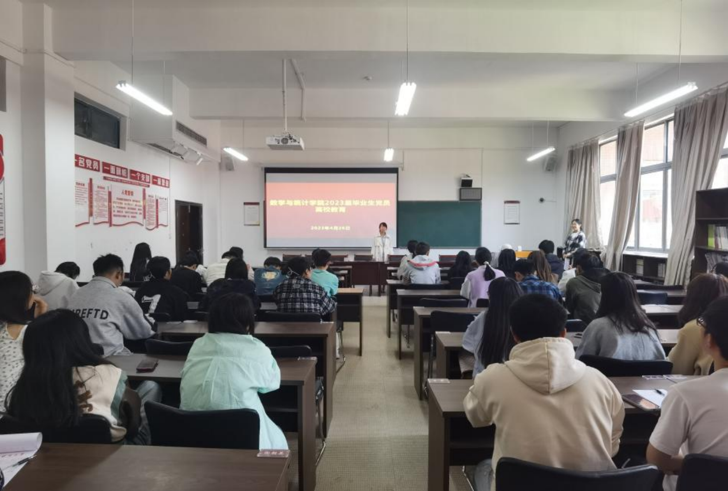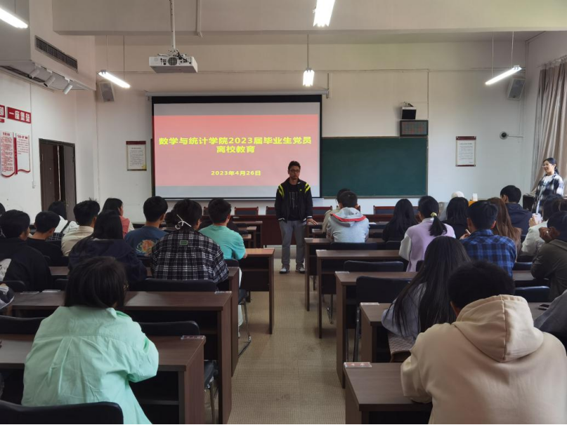 4月26日,老虎机游戏在线玩 在志学楼306会议室开展毕业生党员离校教育。学院党委副书记李书、副处级专职组织员余纯、学生党支部书记陶朝英和杨雪梅、2023届全体毕业生党员参加,活动由陶朝英主持。