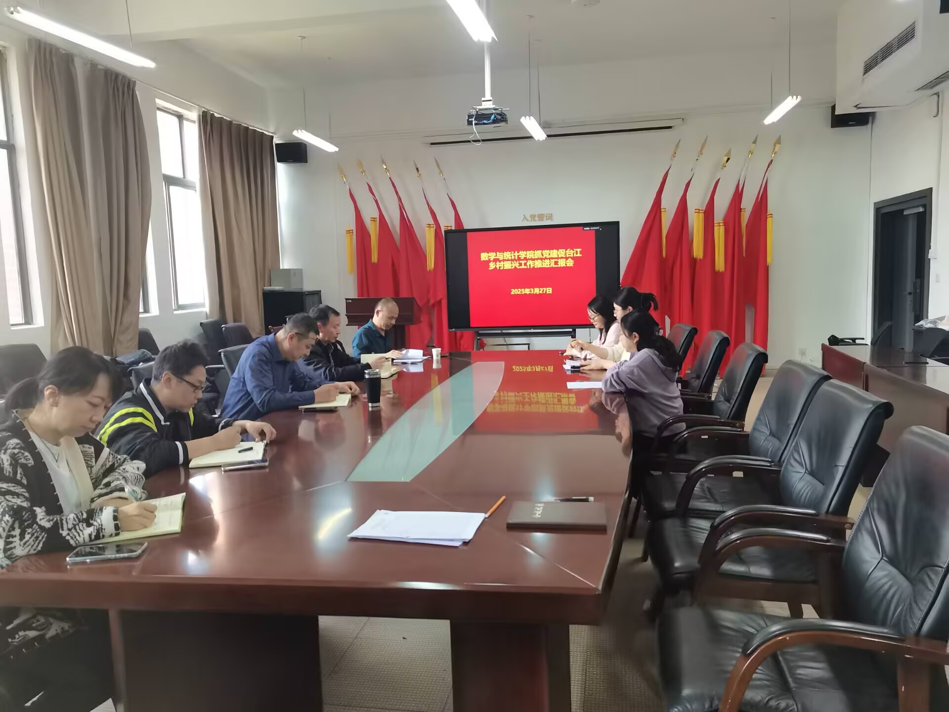为更好发挥学院专业学科优势,全面助力台江乡村振兴,2025年3月27日,学院党委召开抓党建促台江乡村振兴工作推进汇报会,学院党委书记虞帆主持会议,学院党委班子成员、驻村第一书记、相关科室负责人参加会议。