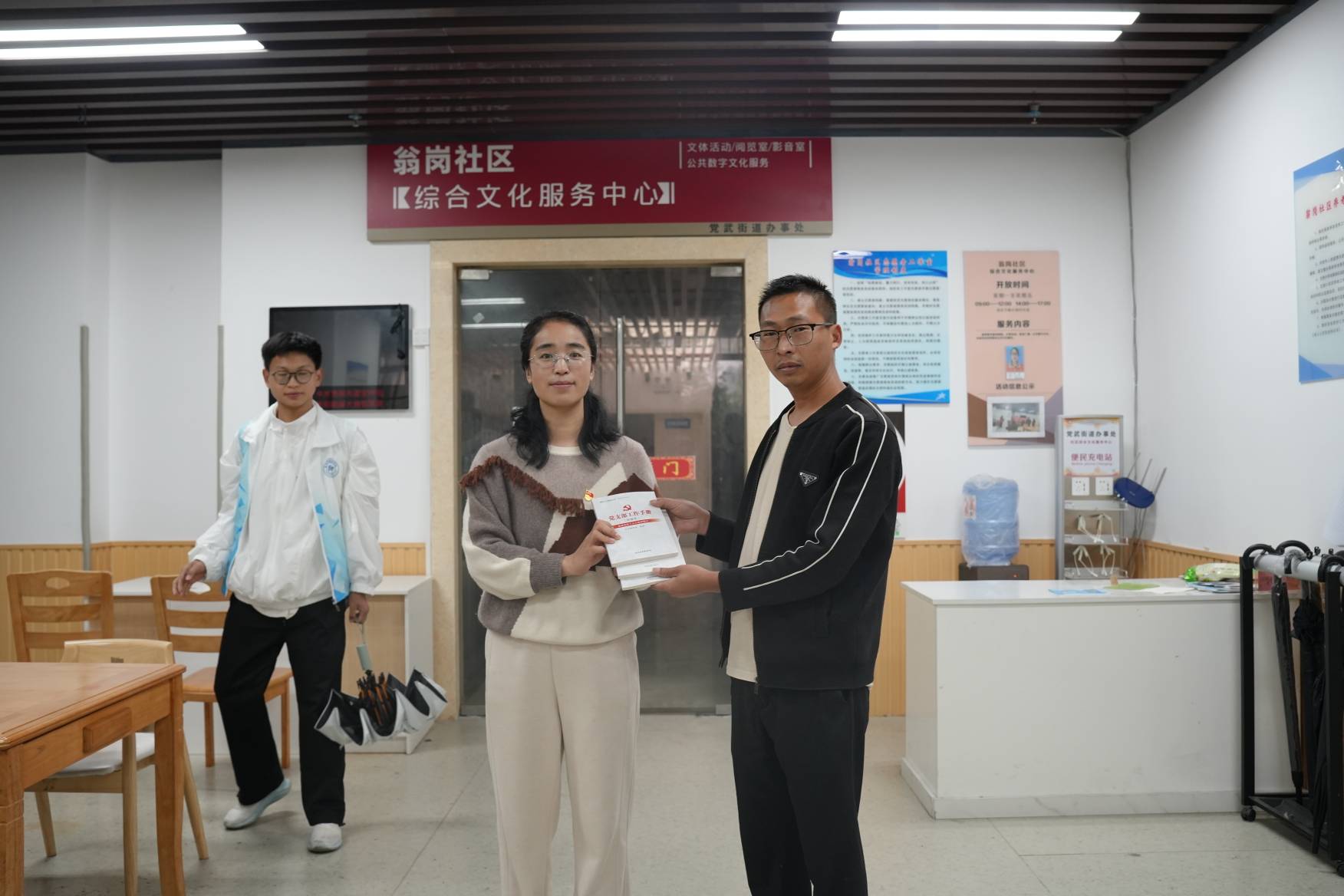 学院党员志愿服务先锋队各成员分组展开活动。环保实践组打扫瓮岗社区综合文化服务中心、向居民宣传垃圾分类知识;反诈骗宣传组为社区群众普及防诈骗知识,推广国家反诈中心APP并指导下载,帮助群众提高防诈骗意识和自我保护能力。