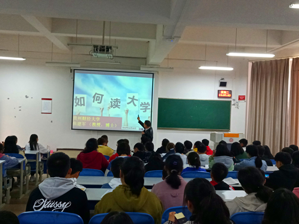 焦建军首先以“如何读大学,如何读好大学”为主题开篇,用幽默诙谐的方式向同学们的举例讲解了大一新生入校后可能遇到的各种困惑与烦恼,鼓励同学们坦然接受各类挑战,强调同学们要珍惜大学时光,切莫浪费大好光阴!