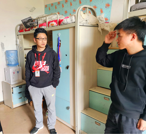 2021年3月24日,老虎机游戏在线玩-免费经典老虎机试玩平台 党委副书记李书和2018级辅导员蔡丽莉走访了18级学生寝室。