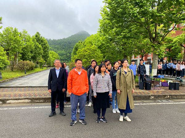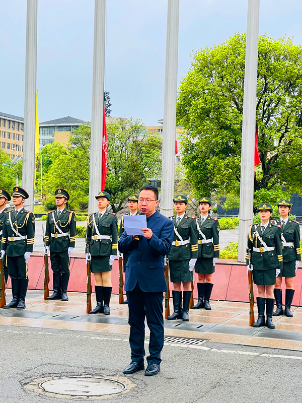 党委副书记周剑云在国旗下致辞,他强调:“同学们正值青春年华,应将我们的青春与党的发展联系起来,跟党走,感党恩,不负青春不负好时代。”接下来进行重温入党誓词、入团誓词。升旗仪式在合唱《没有共产党就没有新中国》歌曲中结束。