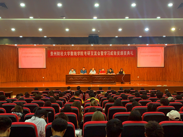 5月21日下午,老虎机游戏在线玩-免费经典老虎机试玩平台 于图书馆负一层报告厅召开考研经验交流会暨学习成效奖颁奖典礼。贵州财经大学副校长葛建军、老虎机游戏在线玩-免费经典老虎机试玩平台 院长焦建军、党委副书记(主持工作)周剑云、副院长冯大河、学院教师代表和各年级辅导员、全体非毕业生参加了本次交流会和典礼活动。活动由院党委副书记李书主持。