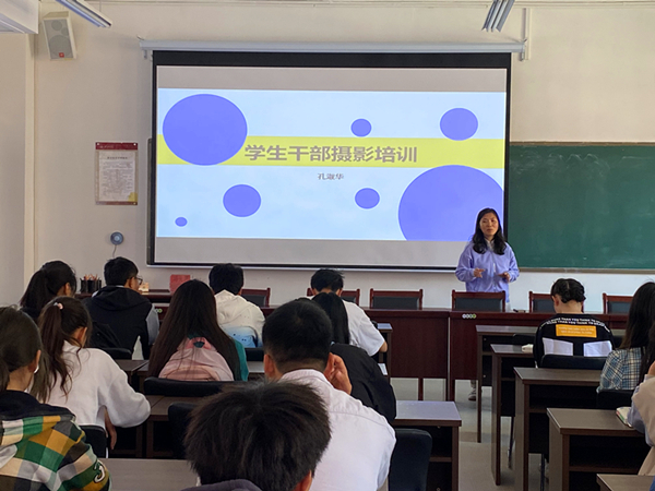 孔淑华以《学生干部摄影培训》为题,主要讲授拍图美学、摄影技巧等内容。首先通过“黄金比例”、“二次构图”等概念的介绍,让同学们了解基础摄影的美学知识。接着以同学们现场拍摄的照片作为案例,讲解怎样才能拍出有效照片。最后叮嘱同学们,无论做什么事都只有亲自动手,才能做的更好。