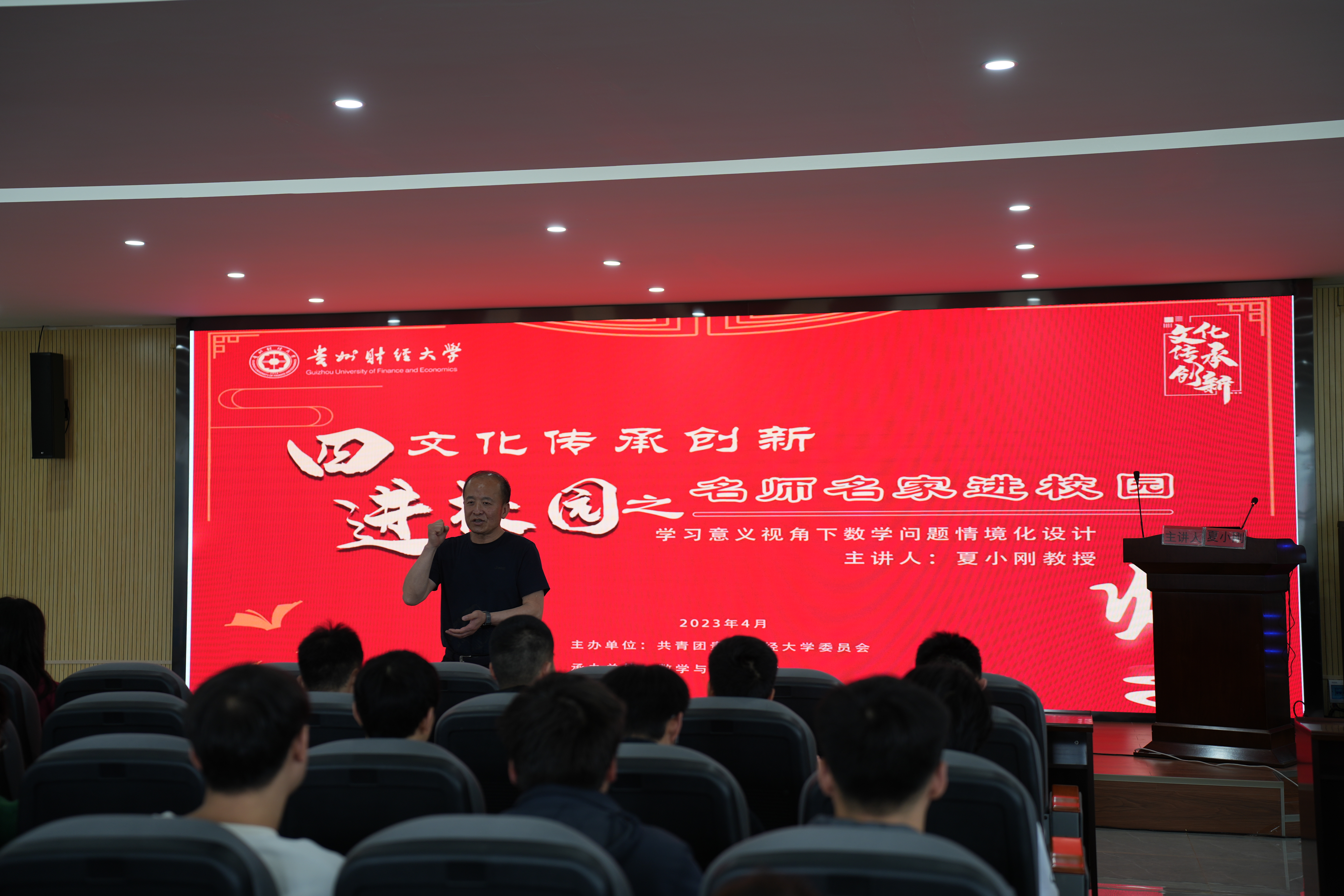2023年4月21日,由共青团贵州财经大学委员会主办、老虎机游戏在线玩 承办的文化传承创新之“四进校园”名师名家进校园的讲座圆满结束。本次讲座由贵州师范大学数学科学学院二级教授、博士生导师、副院长夏小刚老师主讲,和同学们探讨学习意义视角下的数学问题情境化设计,参加本次讲座的师生共130余人。