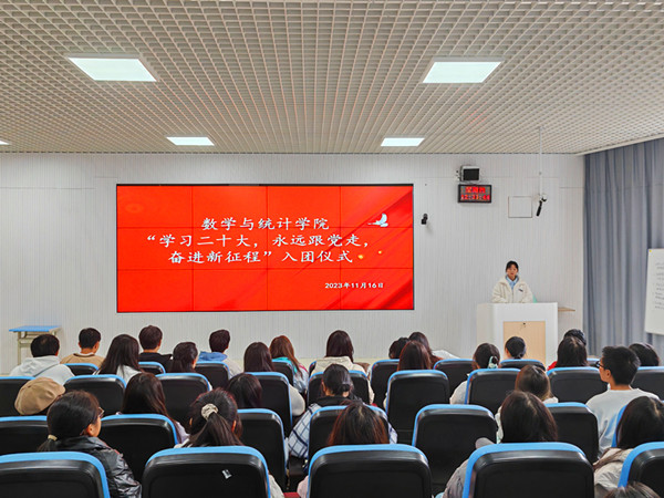 2023年11月16日,老虎机游戏在线玩 “学习二十大·永远跟党走·奋进新征程”主题团日活动暨新团员入团仪式在进学楼102举行,出席本次活动有院党委副书记李书、院团委书记贺婧及各个团支部代表八十余名同学。