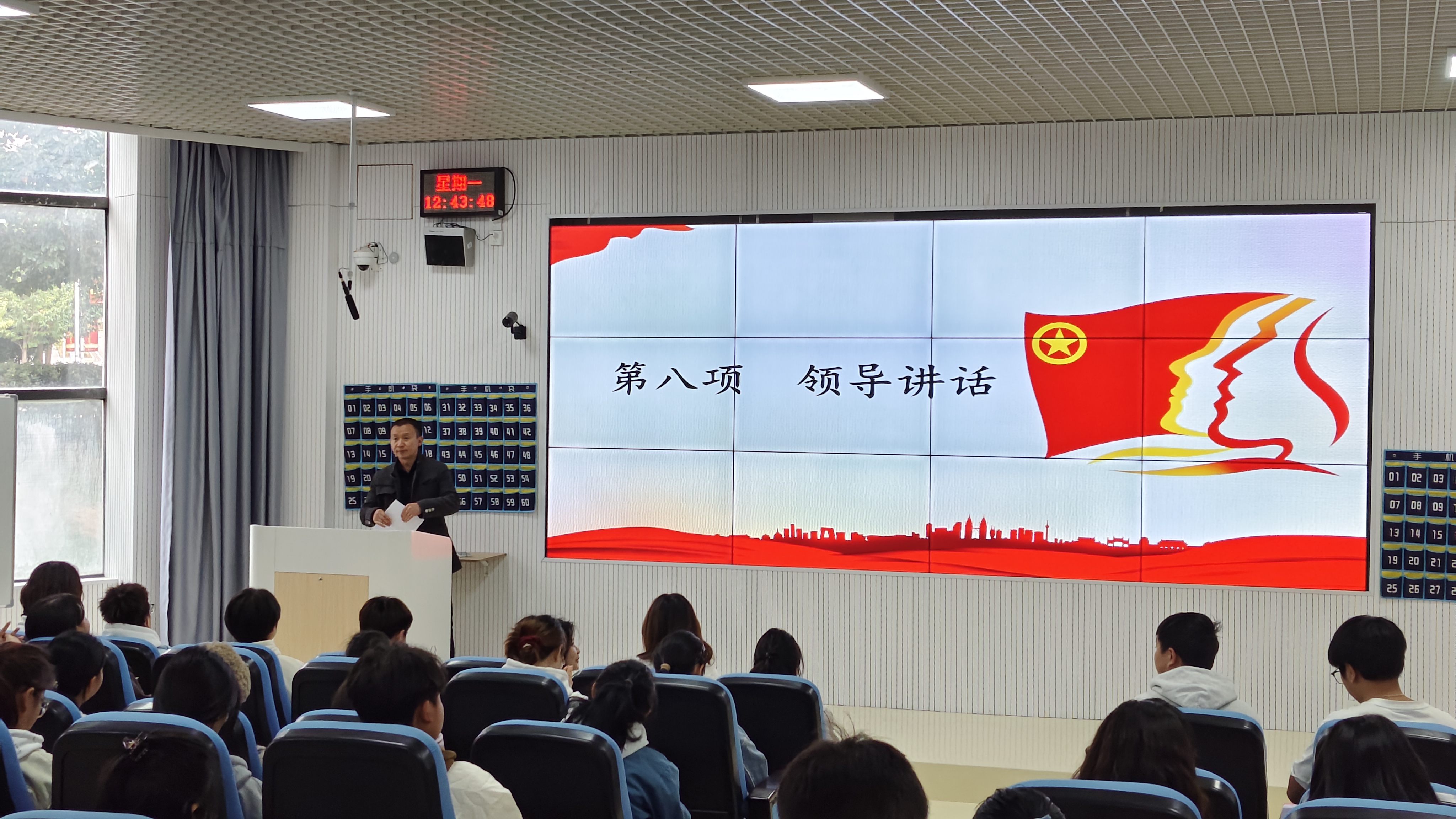 2024年11月18日,老虎机游戏在线玩 在进学楼103教室举行2024年新团员入团仪式。老虎机游戏在线玩 党委副书记朱吉韬、院团委书记贺婧、12位新发展团员及各支部代表100余人参加本次活动。