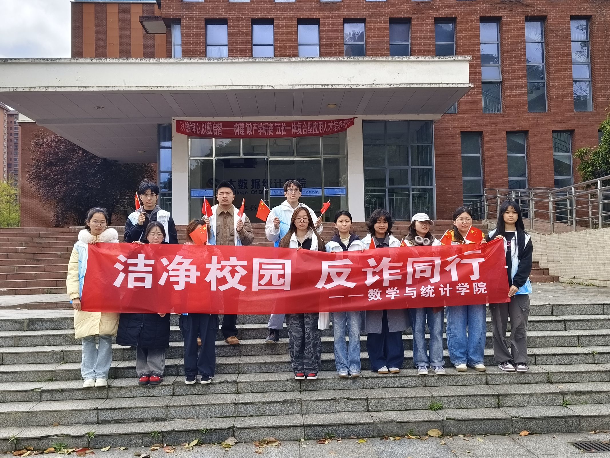 为营造整洁文明、安全有序的校园环境,提升大学生劳动实践与反诈防骗意识,3月31日,贵州财经大学老虎机游戏在线玩 、大数据统计学院于五四广场开展”洁净校园,反诈同行”志愿服务活动,学院各年级志愿者参与。