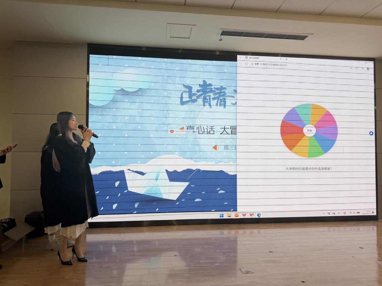 互动小游戏环节真心话大冒险,师生在笑声中拉近距离。学院还为每位毕业生发放了专属纪念品。