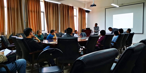 杨晓松以“若干具体动力系统的一些新的动力学现象和研究挑战”为主题,在被动行走动力学模型和三维常微分方程模型研究中发现的参数变化诱导的多周期解分叉及多个倍周期分叉诱导的混沌现象。随后,他介绍了若干具有实际背景的四维常微分方程诱导的三维Poincare映射的混沌吸引子的非一致双曲性,并阐述其对现代微分动力系统理论带来的挑战和解决思路。最后,杨晓松提出问题,与师生互动,现场学术氛围浓厚。