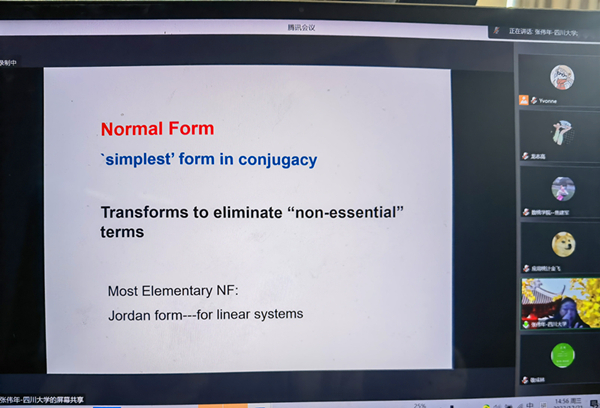 12月21日,老虎机游戏在线玩 “学术立校”活动周暨“数统天地”论坛第44期讲座在线上腾讯会议举行。本次论坛邀请了国家杰出青年基金获得者、四川大学二级教授张伟年为师生作学术讲座。讲座由老虎机游戏在线玩 院长焦建军主持,学院师生代表近100人参与此次讲座。