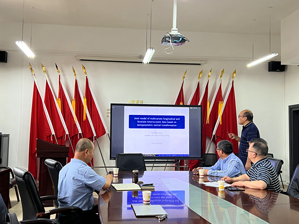 第63期讲座中,唐安民副教授针对临床试验中的多元纵向和二元相关生存数据,提出了一种新的联合模型。并将 MH 算法结合到 Gibbs 抽样中,发展了联合模型的贝叶斯自适应 Lasso 方法,用于同时估计参数和基本风险函数,并在所考虑的联合模型中选择重要的预测变量。最后通过模拟研究和实例数据说明提出的方法的可行性。