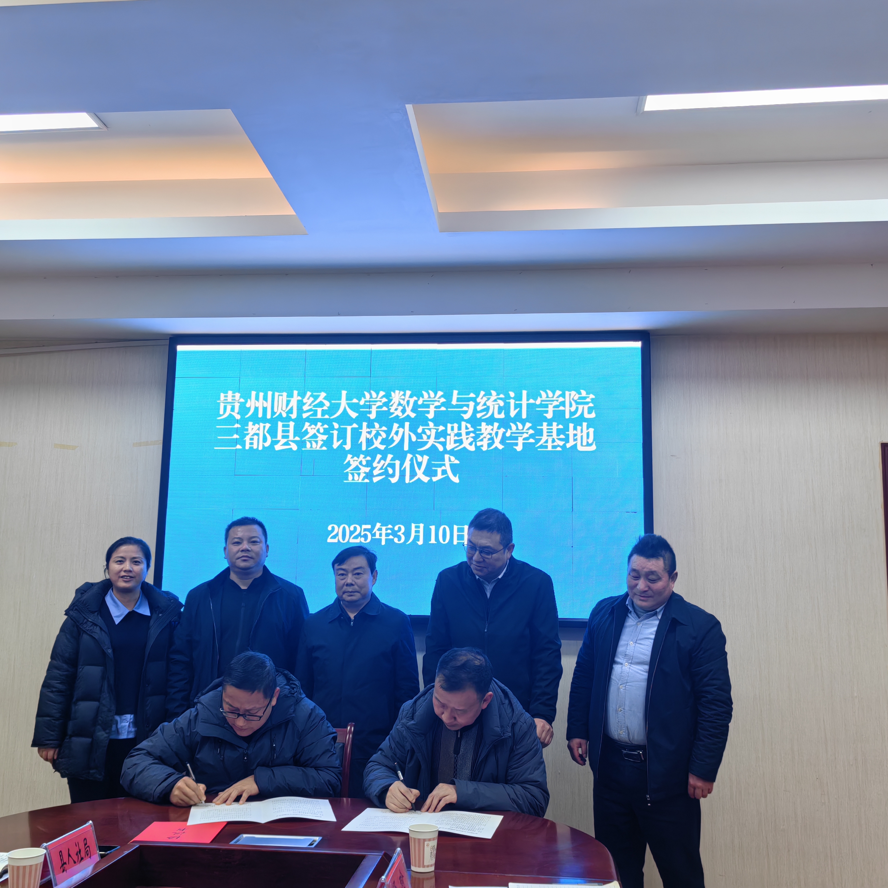 在调研座谈会上,双方就人才培养与就业服务进行了深入交流。冯大河介绍了学院近年来通过优化课程设置、强化实践教学,培养出了一批“懂经管、精专业、强建模”的复合型人才。王晓敏表示,三都县高度重视大学生就业工作,在吸引高素质人才方面采取了系列举措。学院与三都县统计局、人力资源和社会保障局分别签署了《校外实践教学基地协议书》,计划建立“党建+人才引育”合作机制,在人才培养方面开展深度合作,为构建新型人才培养机制达成了初步共识。与三都县的合作计划包括通过实习基地共建、定向招生宣传等措施,吸引更多的毕业生投身基层。