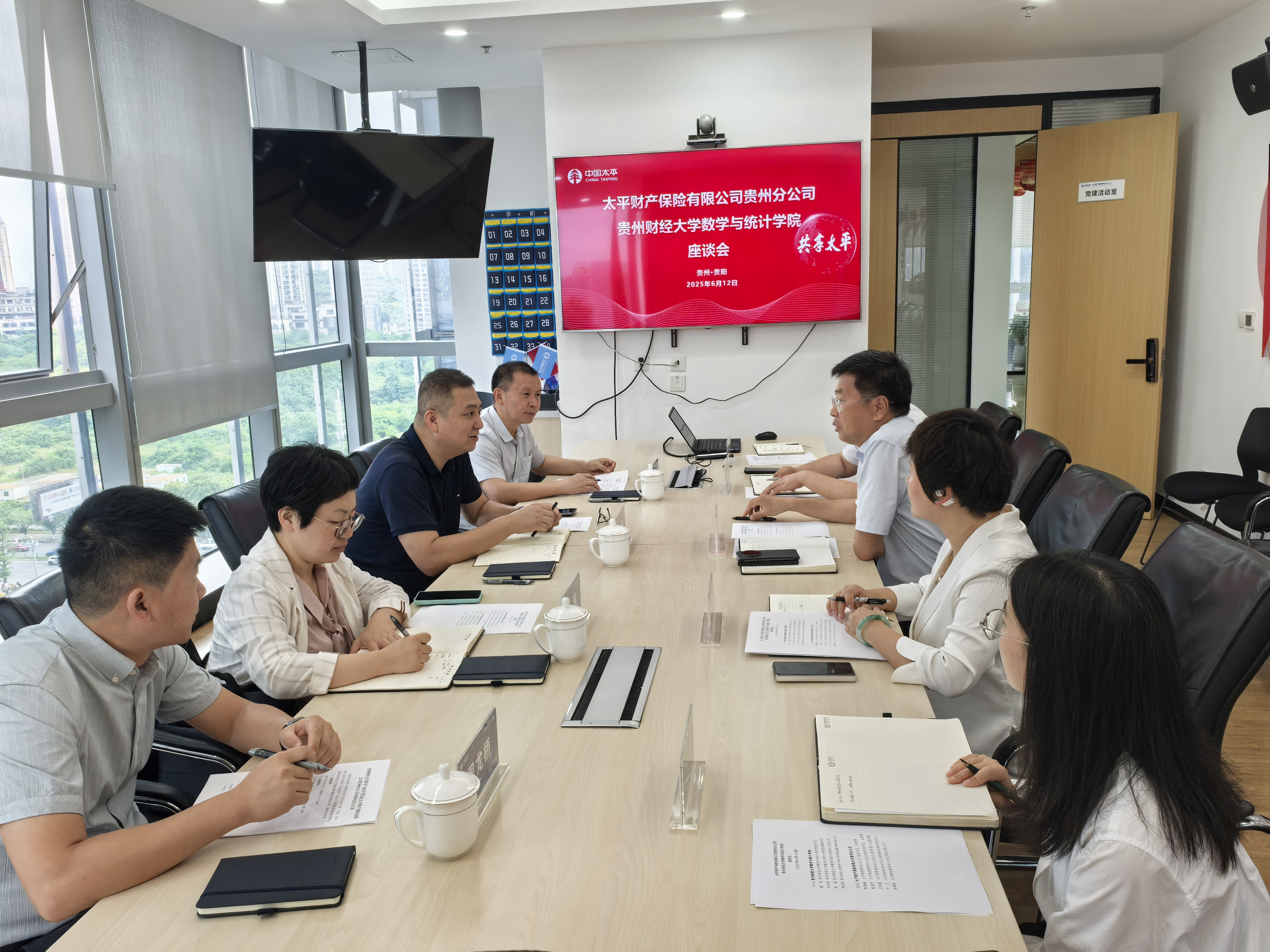 6月12日,老虎机游戏在线玩 党委书记虞帆率队赴太平财产保险有限公司贵州分公司开展访企拓岗调研座谈。太平财险贵州分公司党委书记、总经理陈德敏,贵阳中心支公司党支部书记张凌竹等公司代表,学院党委副书记朱吉韬、基础数学教学部主任周龙桥及2021级本科生辅导员、“数”职未来班主任工作室负责人舒瑜参加座谈。