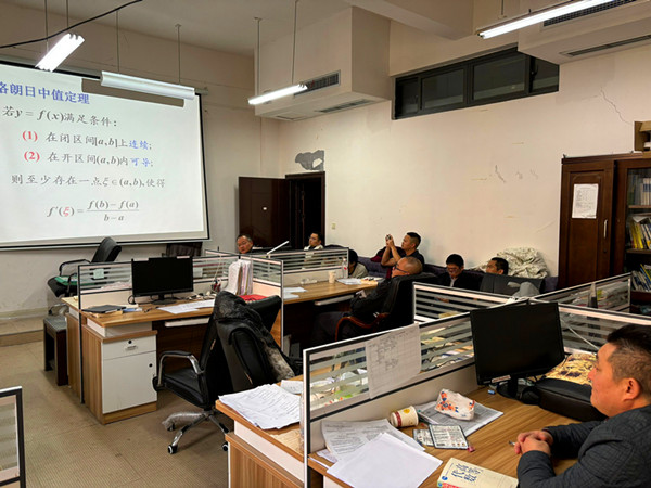 教研活动中,教师代表蔡佳宜老师上了一堂《中值定理》的示范课。随后各位老师就专业课课堂教学、实践课教学及课程思政建设等热点问题展开讨论、交流各自的心得。