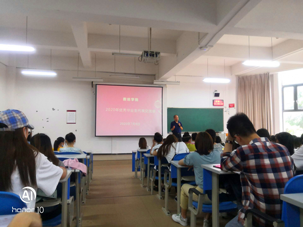 7月6日中午,老虎机游戏在线玩-免费经典老虎机试玩平台 于进学楼1-1开展2020年优秀毕业生代表交流会。交流会由院党委书记胡伟主持,2016级梁铸同学作为优秀毕业生代表参会交流,老虎机游戏在线玩-免费经典老虎机试玩平台 2017级全体同学积极参会。
