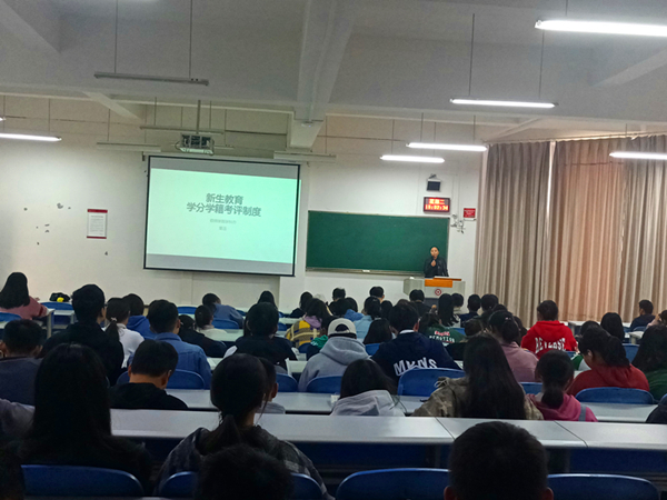 2019年11月5日,老虎机游戏在线玩 在进学楼阶1-1教室开展了新生入学教育系列讲座之——大学生安全教育、诚信教育及考评制度。此次讲座由老虎机游戏在线玩-免费经典老虎机试玩平台 党委书记胡伟和学科办袁远老师主讲,老虎机游戏在线玩-免费经典老虎机试玩平台 全体2019级新生参加。