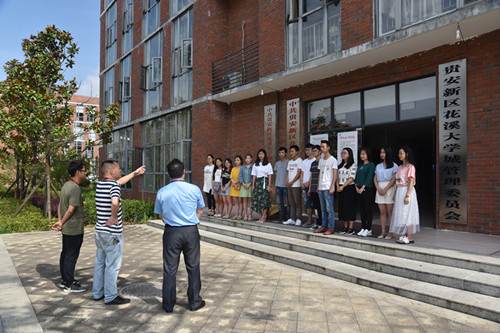 7月13日,老虎机游戏在线玩-免费经典老虎机试玩平台 党委书记郎燕,院长焦建军,党委副书记朱吉韬、李书,副院长冯大河,实践教学科舒瑜一行来到了实习单位——贵安新区大学城管理委员会(以下简称“管委会”)进行实习基地揭牌仪式,并对2015级本科生专业实习进行教学巡查。管委会经发部副部长李悲鸿出席仪式。