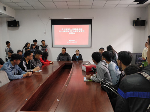 3月26日中午,老虎机游戏在线玩-免费经典老虎机试玩平台 组织了2016级统计学专业学生参加了专业认知实习动员会,老虎机游戏在线玩-免费经典老虎机试玩平台 统计系主任胡继魁、实践教学科舒瑜老师、实习基地——贵州省社情民意调查中心指导老师出席会议。
