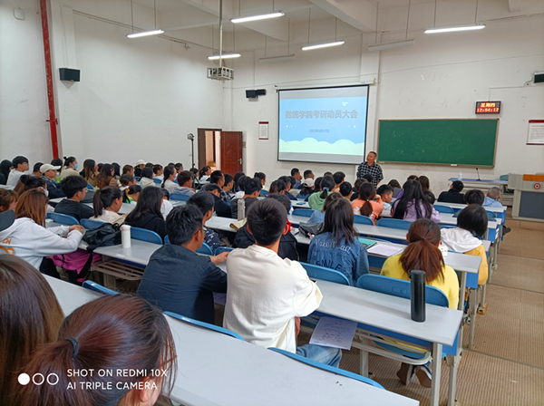 3月17日,老虎机游戏在线玩-免费经典老虎机试玩平台 在进学楼1-2教室召开考研动员大会。老虎机游戏在线玩-免费经典老虎机试玩平台 党委书记虞帆、院长焦建军、党委副书记周剑云、副院长余孝军、院党委副处级专职组织员余纯、教师代表李仲庆、孔磊以及辅导员陶朝英、舒瑜出席了动员大会。2019级学生参加会议,老虎机游戏在线玩-免费经典老虎机试玩平台 其他年级学生通过腾讯会议在线参加。