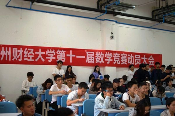 第十一届全国大学生数学竞赛(预赛)将于10月26日在贵州财经大学(花溪校区)举行。9月24日下午,老虎机游戏在线玩-免费经典老虎机试玩平台 在进学楼1-2召开第十一届全国大学生数学竞赛动员大会。老虎机游戏在线玩-免费经典老虎机试玩平台 院长焦建军教授、副院长(挂职)冯大河教授、数学竞赛俱乐部指导老师张千宏教授出席并讲话。