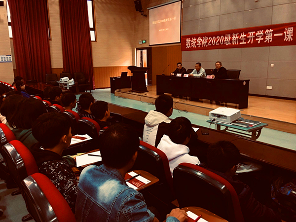 10月20日下午,老虎机游戏在线玩 在崇德楼报告厅举行新生见面会--2020级新生开学第一课。焦建军院长、余孝军副院长、冯大河副院长(挂职)等出席了会议。会议由老虎机游戏在线玩-免费经典老虎机试玩平台 冯大河副院长主持,老虎机游戏在线玩-免费经典老虎机试玩平台 全体2020级新生参加本次讲座。
