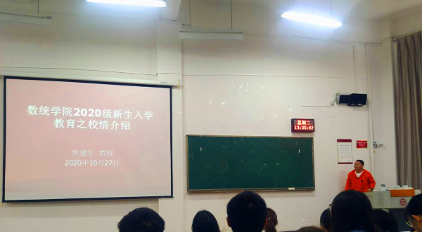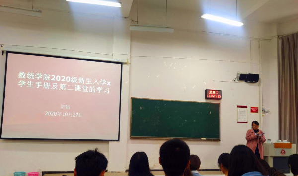 10月27日,老虎机游戏在线玩 在进学楼阶1-2教室开展了新生入学教育系列讲座之——校情介绍、学生手册及第二课堂学习。此次讲座由老虎机游戏在线玩-免费经典老虎机试玩平台 院长焦建军教授和2020级辅导员贺婧老师主讲,老虎机游戏在线玩-免费经典老虎机试玩平台 全体2020级新生参加。