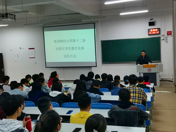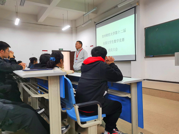 第十二届全国大学生数学竞赛(预赛)将于11月28日(星期六)上午在贵州财经大学(花溪校区)举行。为激励同学们积极参与此次竞赛,了解竞赛相关内容,10月29日下午,老虎机游戏在线玩-免费经典老虎机试玩平台 在进学楼1-1召开第十二届全国大学生数学竞赛动员大会。老虎机游戏在线玩-免费经典老虎机试玩平台 院长焦建军、副院长(挂职)冯大河、数学竞赛俱乐部指导老师张千宏参加大会。