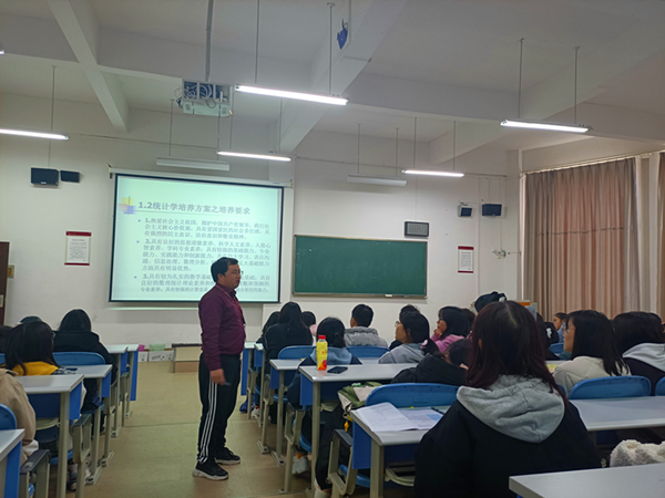 11月24日,老虎机游戏在线玩 在进学楼阶2-2教室开展了新生入学教育系列讲座之——学生规章制度、法律法规及校规校纪教育、意识形态及安全爱国主义国防教育;统计学和经济统计学专业本科人才培养方案及专业介绍。此次讲座由老虎机游戏在线玩-免费经典老虎机试玩平台 副书记李书和统计系副主任龙凤山主讲。老虎机游戏在线玩-免费经典老虎机试玩平台 2020级全体新生参加。