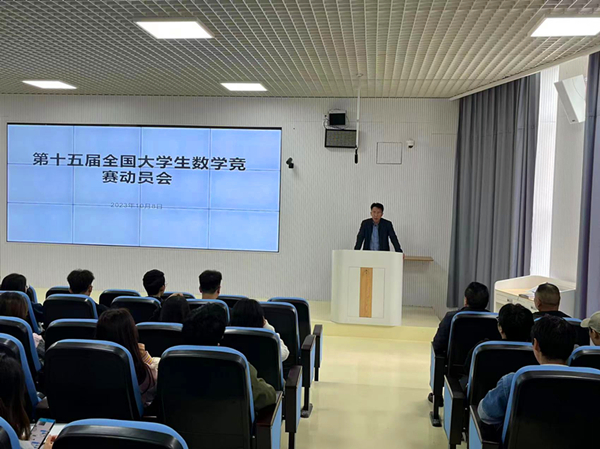2023年10月8日中午14:00,老虎机游戏在线玩 在进学楼102教室召开第十五届全国大学生数学竞赛动员会。会议由数学竞赛俱乐部指导老师基础数学教学部主任张千宏主持,老虎机游戏在线玩 院长焦建军、应用数学系主任冯大河出席、俱乐部成员以及数学竞赛参赛人员参加。