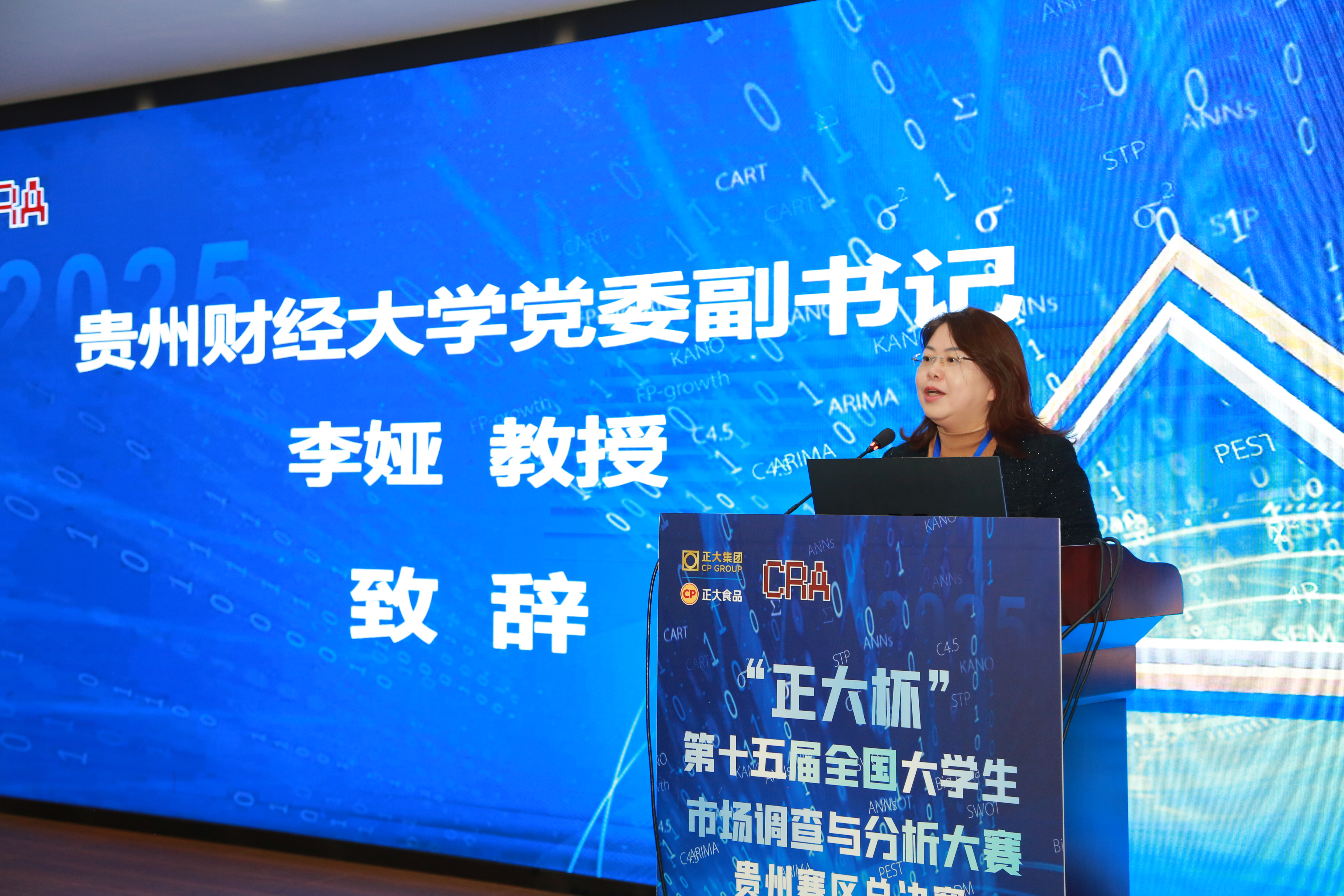 4月26日,由中国商业统计学会主办,我校老虎机游戏在线玩 承办的“正大杯”第十五届全国大学生市场调查与分析大赛贵州省本科组决赛在我校圆满落幕。校党委副书记李娅教授出席开幕式并致辞。来自省内外高校、企事业单位的评委专家,学校有关单位负责人,各参赛高校带队老师和学生200余人参加,我校老虎机游戏在线玩 党委书记虞帆主持。