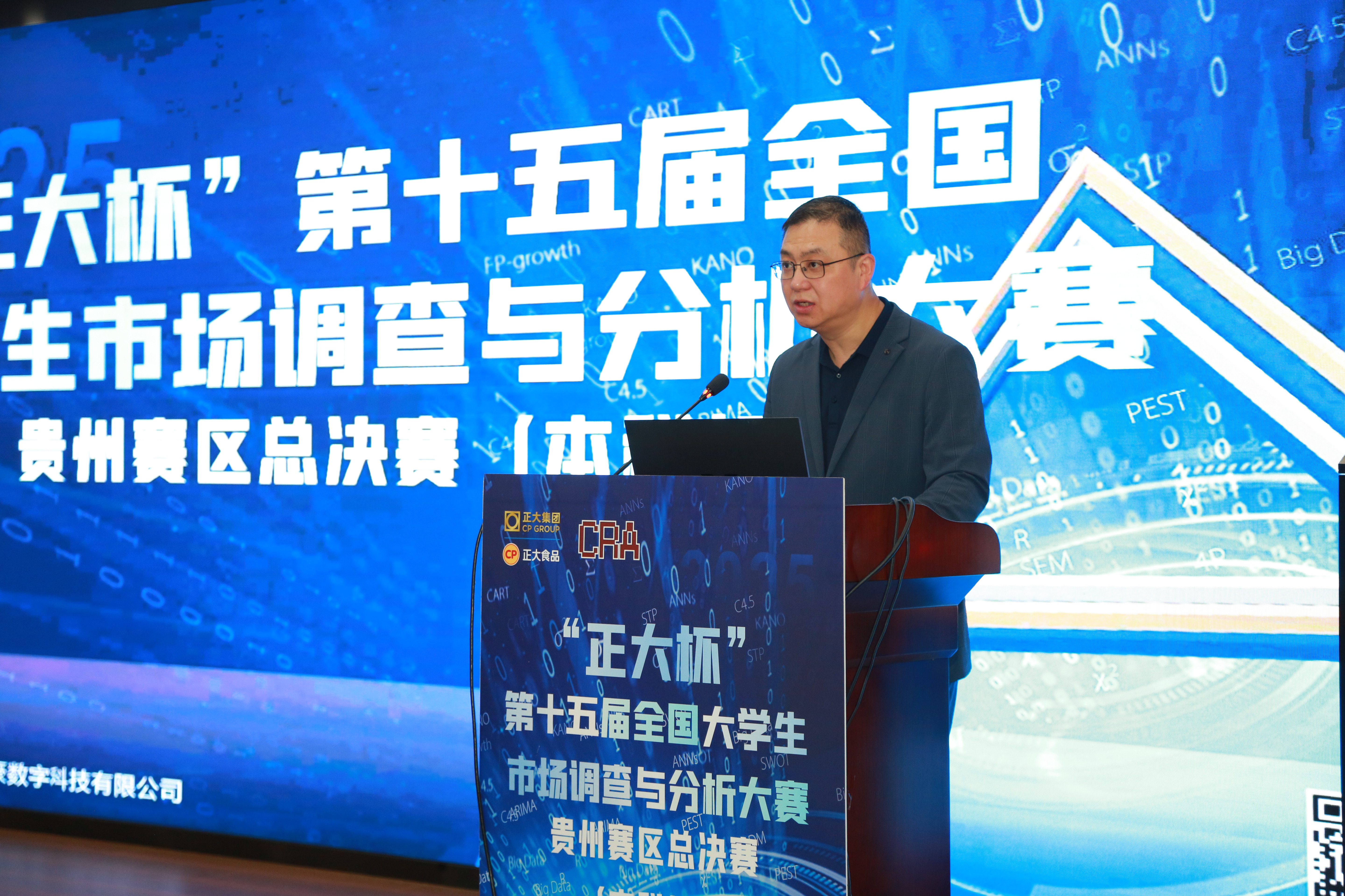 行业评委代表、贵州雁行文化产业发展股份有限公司董事长黄伟结合自身经历,强调市场调查在社会经济中的重要性。他鼓励同学们在调研中将理论知识与实际应用相结合,关注社会痛点,用数据讲好贵州故事,为未来的职业发展打下坚实基础。