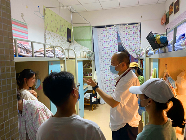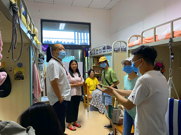 6月5日晚,老虎机游戏在线玩-免费经典老虎机试玩平台 党委书记胡伟与学院学生会、青协以及学生党建工作中心的学生干部代表一行走进老虎机游戏在线玩 18级学生寝室,开展返校巡查与慰问工作。