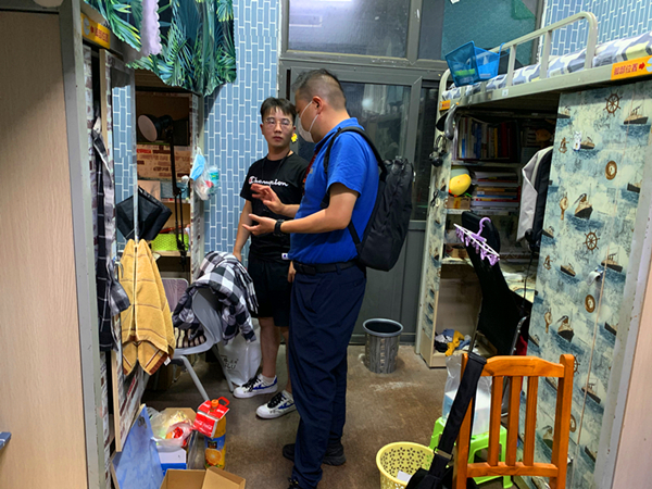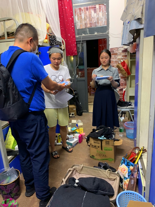 “毕业答辩准备得怎么样”“工作找的怎么样”“热水供应正常吗”“特殊时期,大家要注意个人防护” 每到一个宿舍,胡伟都会了解学生需求,亲切地询问学生来校后的学习、生活、就业等情况,询问是否有困难,并嘱咐学生一定要加强自我防护,遵守各项返校要求和校规校纪,珍惜最后在校的宝贵时光。临走时胡伟还特别留下自己的电话号码,叮嘱学生遇到困难随时联系他或者辅导员。