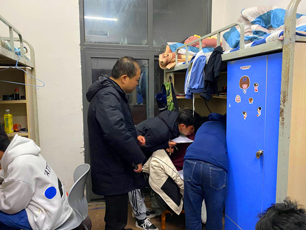在走访宿舍查看同学们期末复习情况的同时,胡伟再次向大家强调要遵守考试纪律,认真复习备考,在考试中不能作弊;同时,胡伟再次提醒同学们做好安全离校工作,认真填报寒假去向表,选择有正规运营资质的交通工具回家,不要乘坐黑车,时刻注意保护自身安全。