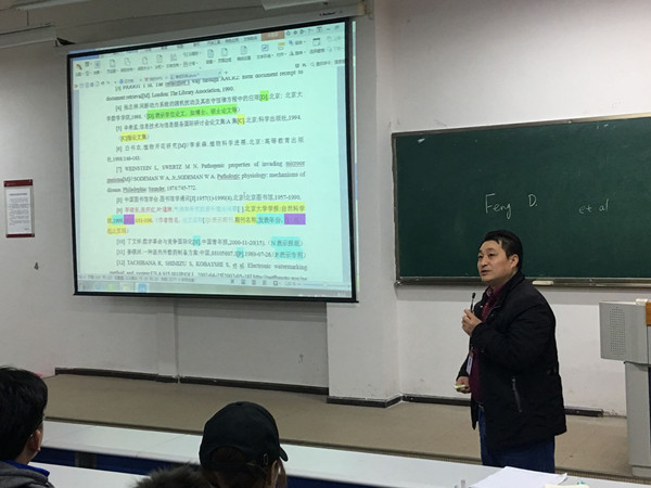 冯院长对实习做了安排并召开了毕业论文指导会。首先,冯院长对毕业实习的时间,工作单位等做了安排,并强调了实习过程中学生的注意事项。随后,冯院长对整个毕业论文的写做了详细指导,强调了写作规范,对摘要、参考文献等学生易犯错的地方进行了详细的讲解。