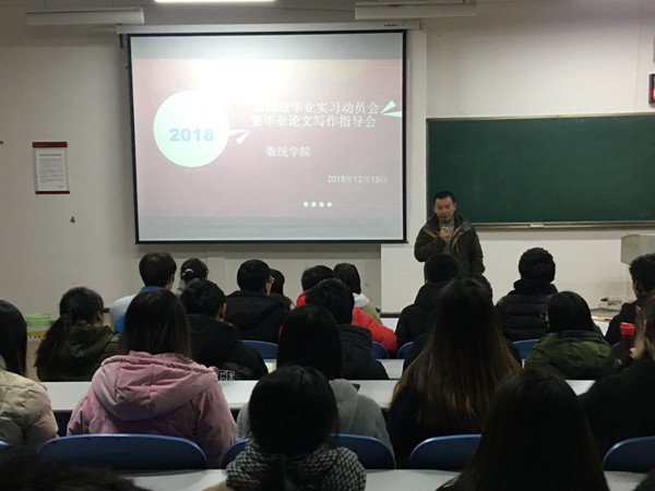 2018年12月14日,老虎机游戏在线玩 召开了15级毕业生毕业实习动员会暨毕业论文指导会。老虎机游戏在线玩 副书记朱吉韬、副院长冯大河教授分别为学生作了动员。