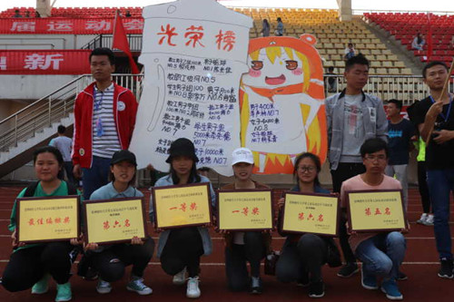 的学生们积极参加,有扔铅球、三级跳远、跳高、4*400米接力、4*100米接力、100米、200米、5000米、10000米等项目,教职工的也参加了这次活动,比如趣味比赛,毛毛虫等,这些项目都有同学踊跃参加,并且取得了非常棒的成绩。陈光佳铅球比赛一等奖,教职工拔河第五名,郭家方男子组一百米第八名,肖富男子组800米第六名,李先德学生男子组千米第七名,接力比赛也获得了很好的成绩...... 这些都是运动员努力得来的,我们学院为有这样的运动员而感到骄傲、自豪。