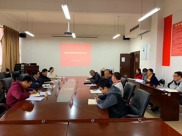 11月5日,校党委委员、纪委书记、监察专员龙化到老虎机游戏在线玩-免费经典老虎机试玩平台 开展座谈调研。老虎机游戏在线玩-免费经典老虎机试玩平台 全体党政领导班子成员、全体科级干部、辅导员代表参加座谈。校纪委纪检监察室副主任陈波及纪委办公室工作人员陪同调研。