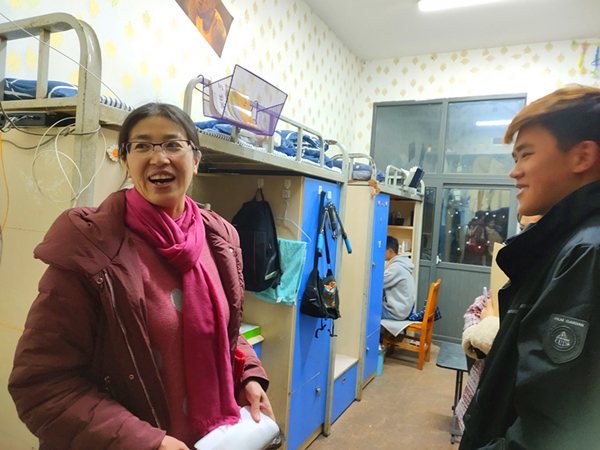 排查组一行逐一走访各年级各班寝室,了解和关心同学们在宿舍的生活情况,询问同学们日常生活中遇到的问题并给予相应的建议,同时强调寝室用电安全,督促同学们养成良好的生活习惯,提高寝室生活安全意识,叮嘱同学们好好复习备考、诚信考试,并注意回家途中的安全和寒假个人疫情防护。