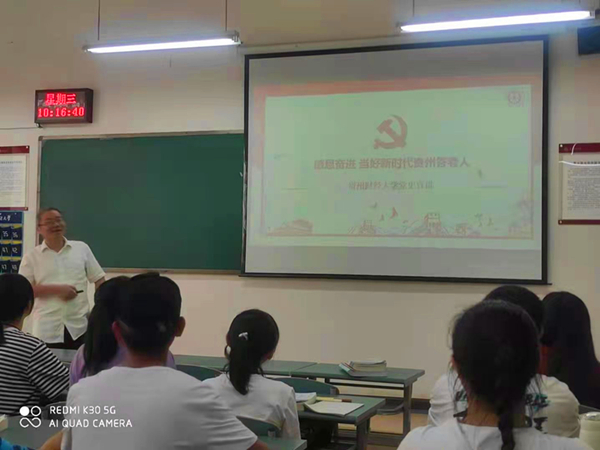 6月9日上午,老虎机游戏在线玩-免费经典老虎机试玩平台 副院长余孝军做题为“感恩奋进,当好新时代贵州答卷人”的党史学习教育宣讲,2021级部分学生聆听了宣讲。