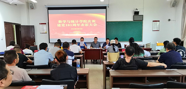 在志学楼306会议室召开庆祝建党101周年表彰大会。院领导班子成员虞帆、焦建军、周剑云、李书、余孝军、余纯出席会议,全体教职工党员、学生党员代表、民主党派和群众代表共80余人参加会议。院党委副书记、院长焦建军主持会议。
