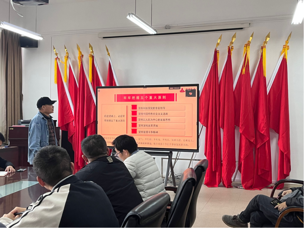 宣讲中,焦建军同志就党的二十大报告中的新观点、新论断、新思想进行了讲解,要求大家正确认识大会主题,号召大家牢记“三个务必”,牢牢把握五个重大原则。