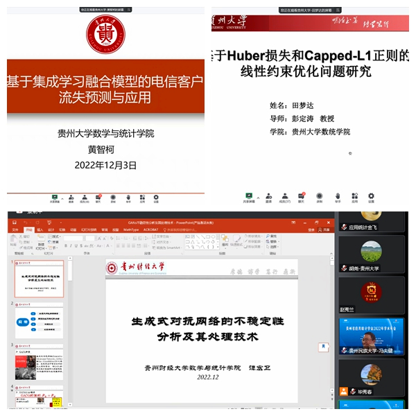 此次年会设置了3个线上会场,来自贵州大学、贵州财经大学、贵州民族大学、遵义师范学院等省内高校的师生围绕全国社保基金股票投资收益的统计分析、面向新文科的统计学教学科研平台建设、和高维数据背景下改进 MGARCH模型的估计及应用等主题开展了深入的学术探索与交流。通过切磋和碰撞,大家获益匪浅,开阔了视野、拓宽了思路。