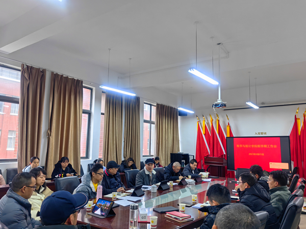 在志学楼331会议室召开2022-2023学年第二学期工作会。学院党委书记虞帆、党委副书记李书、副院长余孝军、党委副处级组织员余纯、各系(部)主任、全体行政人员参加会议,院长焦建军主持会议。