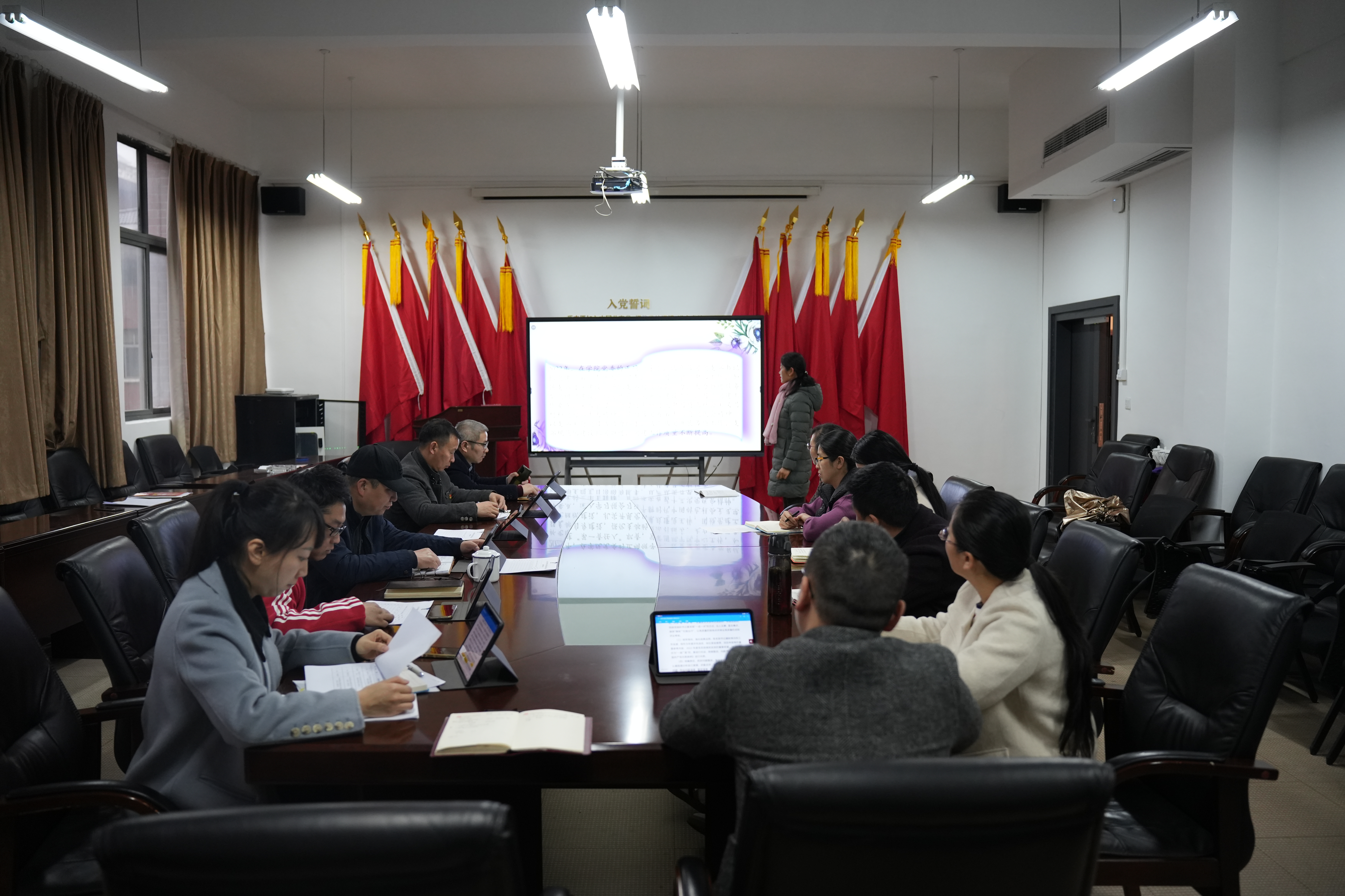 考核现场,老虎机游戏在线玩 2022年度7个基层党支部书记围绕加强党对教育工作的全面领导、贯彻高校基层党组织工作条例、加强党员队伍教育管理、加强和改进新形势下思想政治工作、落实教育系统意识形态工作责任制、党建引领教育高质量发展和落实“三统筹”工作等7个方面展开述职。