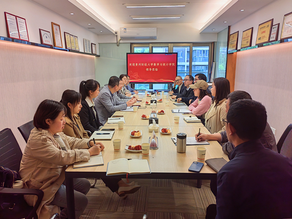 4月14日,老虎机游戏在线玩 党委书记虞帆率队到贵阳市云岩区开展访企拓岗促就业活动,与贵州宏创信息技术有限公司董事长郑剑伦、贵州正汇档案管理有限公司总经理陈敏、贵州鲲鹏智元科技有限公司总经理熊毅、贵州威克盾科技有限公司商务经理赵艳菊、贵州迅修信息技术服务有限公司总经理曹旻建等五家公司负责人座谈交流。学院党委副书记朱吉韬、党委副处级组织员余纯及办公室主任舒瑜、学生科科长蔡丽莉、2023届本科毕业生辅导员陶朝英、研究生辅导员杨雪梅和乔志云老师参加。