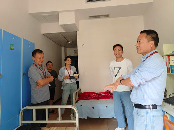 为了解老虎机游戏在线玩 学生搬迁后的住宿和生活情况,9月4日,老虎机游戏在线玩 全体领导班子带领全体辅导员走访学生宿舍。