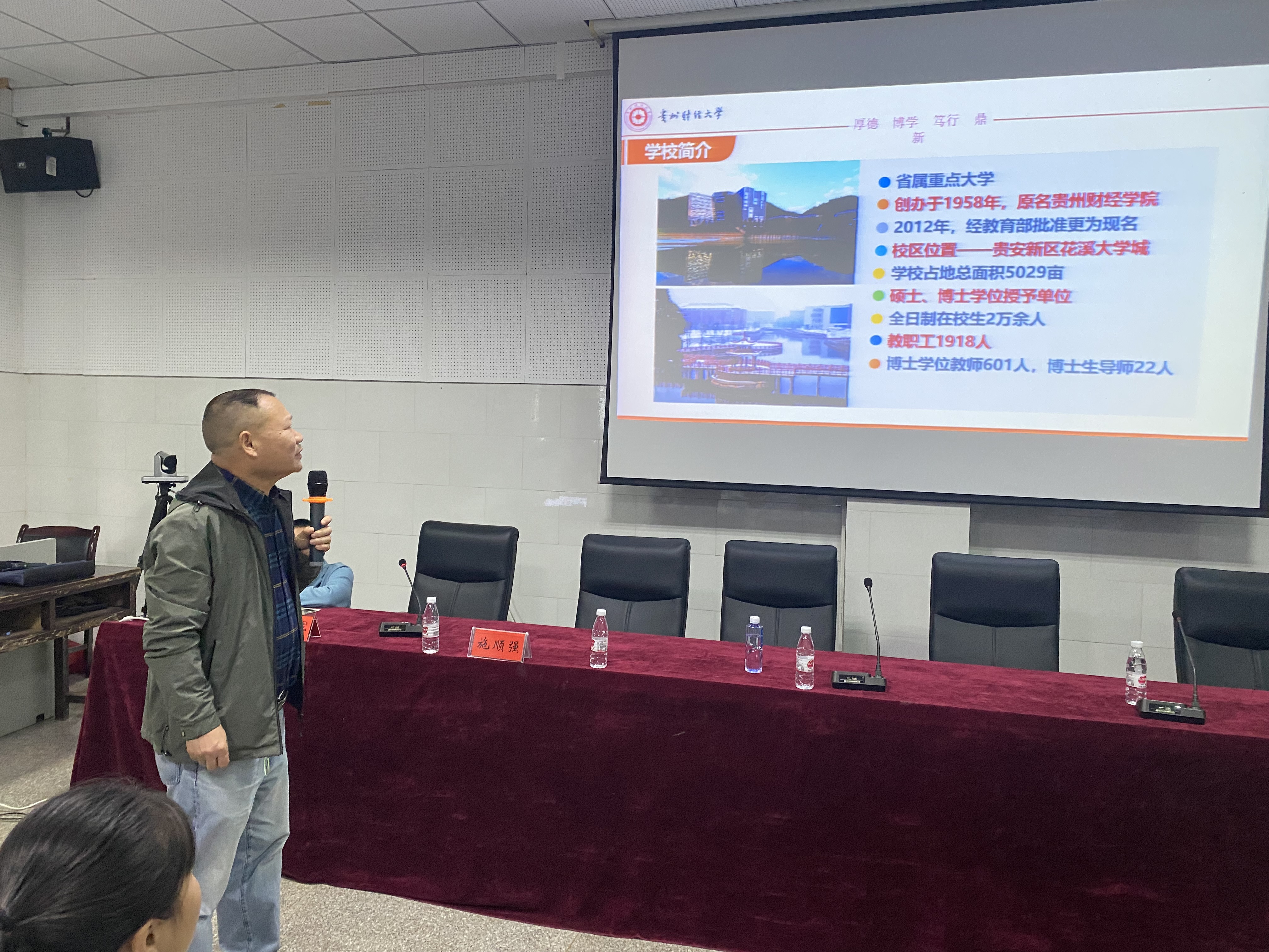 为进一步加强学院对外合作交流,及时开展研究生招生宣传,10月9日至10日,学院党委书记虞帆、党委副书记、院长焦建军、党委副书记朱吉韬、副院长余孝军一行前往黔西南、安顺调研并开展研究生招生宣传。